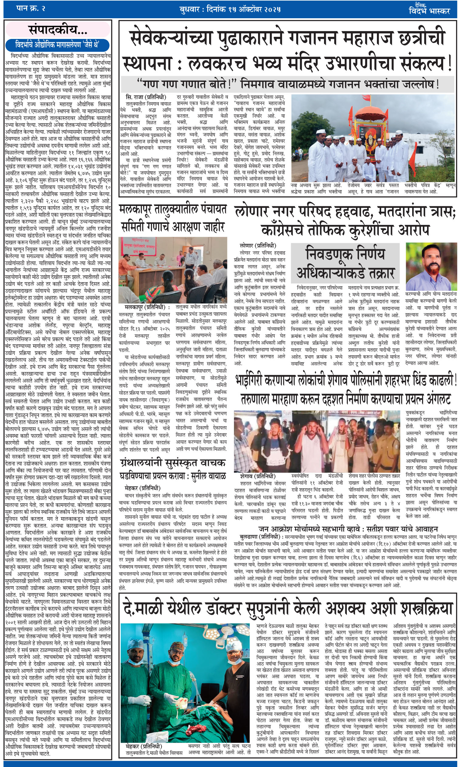आपल्या परिसरातील ताज्या घडामोडी बातम्या व जाहिरात साठी संपर्क साधा ????दैनिक विदर्भ भास्कर कार्यकारी संपादक वसीम खाँ मो नं संपर्क 9764485048